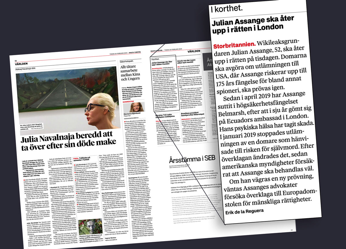 RÄTTEGÅNGEN MOT ASSANGE SOM KORT NOTIS PÅ SIDAN 15 I DAGENS DN
